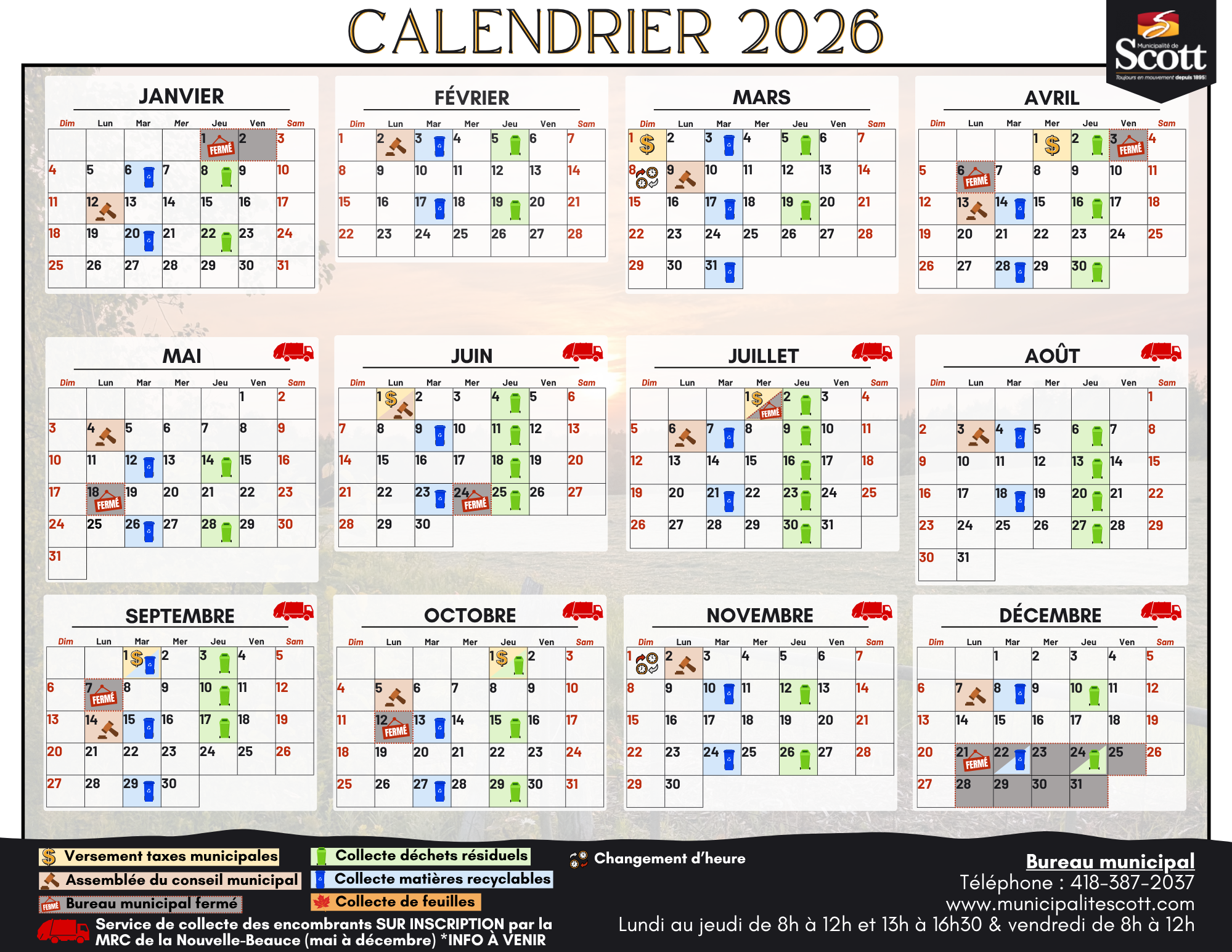 Scott, une municipalité où histoire et nature se rencontrent ! Que vous soyez résident ou visiteur, laissez-vous charmer par nos paysages éblouissants, nos attraits touristitques et notre ambiance conviviale. Ici, chaque coin de rue raconte une histoire, et chaque activité est une invitation à créer des souvenirs inoubliables.