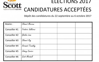 OFFRES D'EMPLOIS: La Municipalité de Scott est à la recherche de personnel électoral pour le jour du vote par anticipation le dimanche 29 octobre 2017 [...]